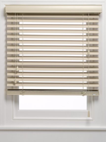 50 mm Krem Ahşap Jaluzi Perde İp Merdivenli AJ555