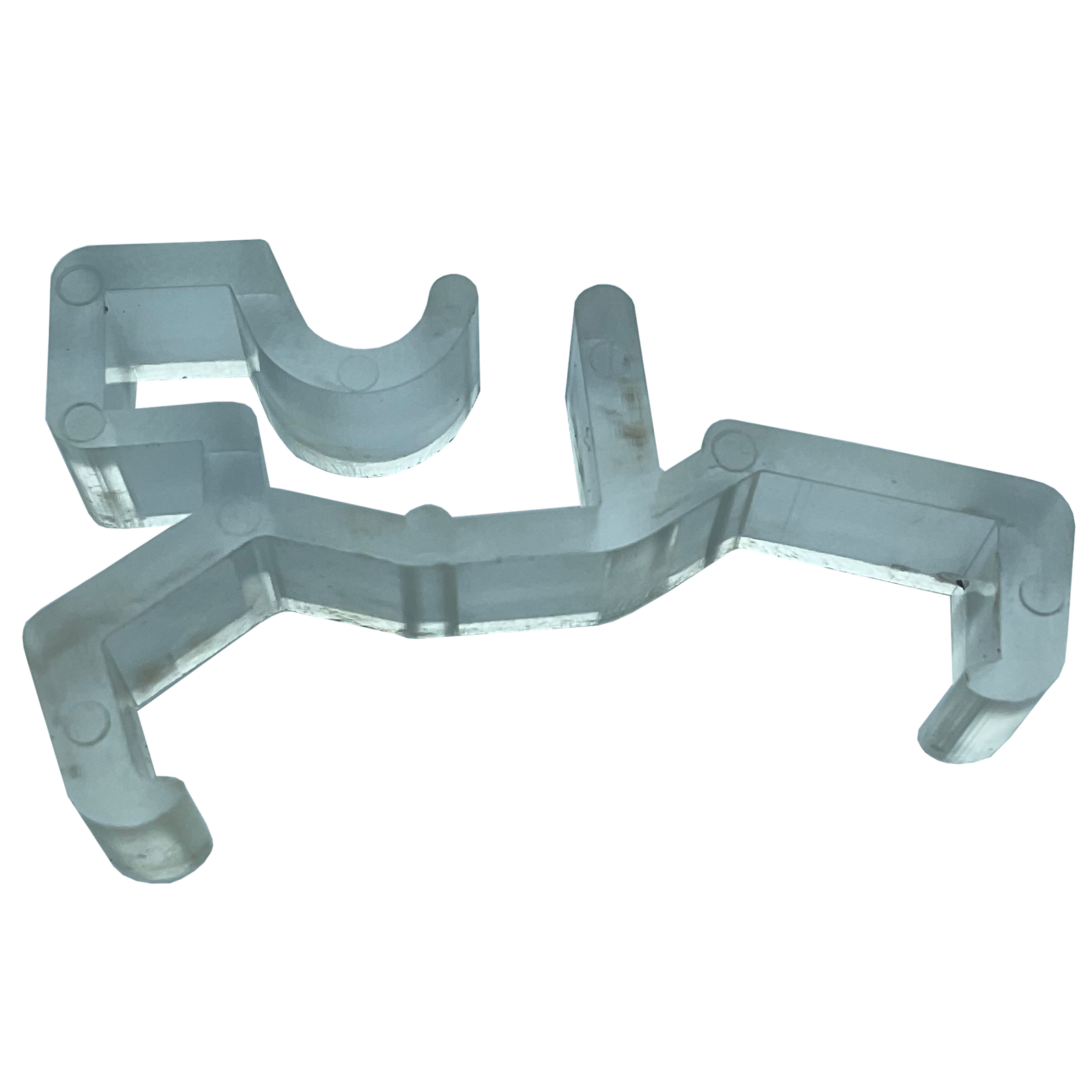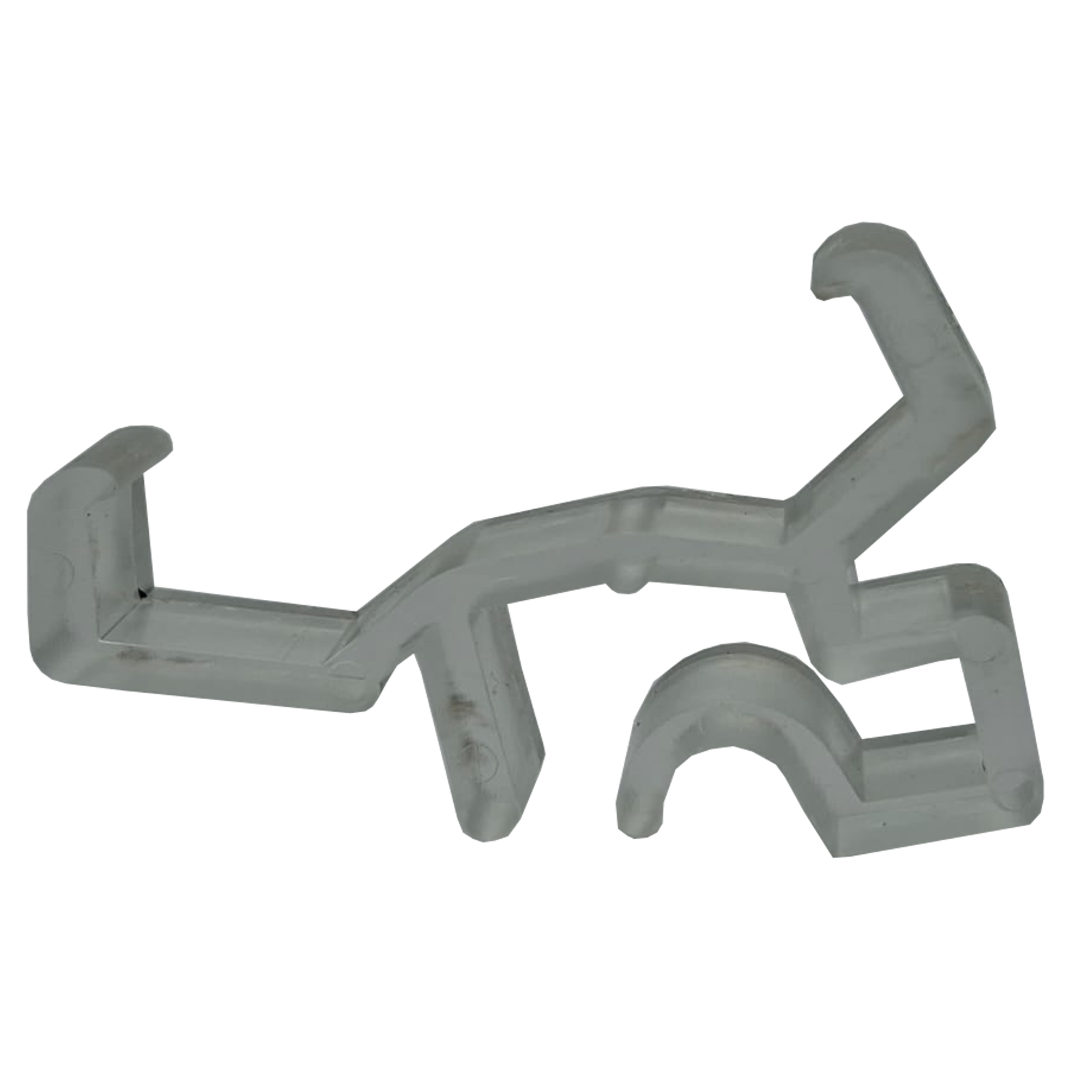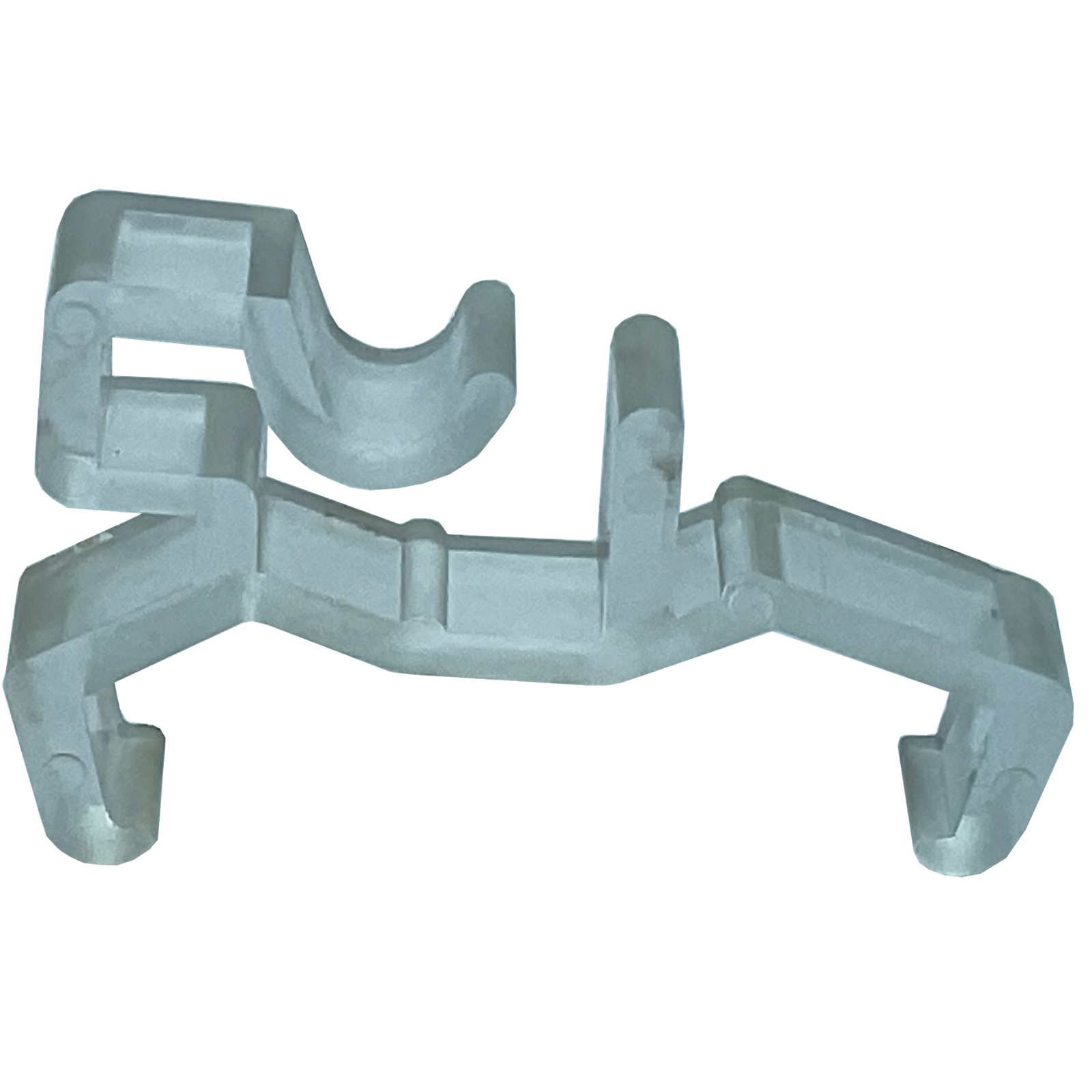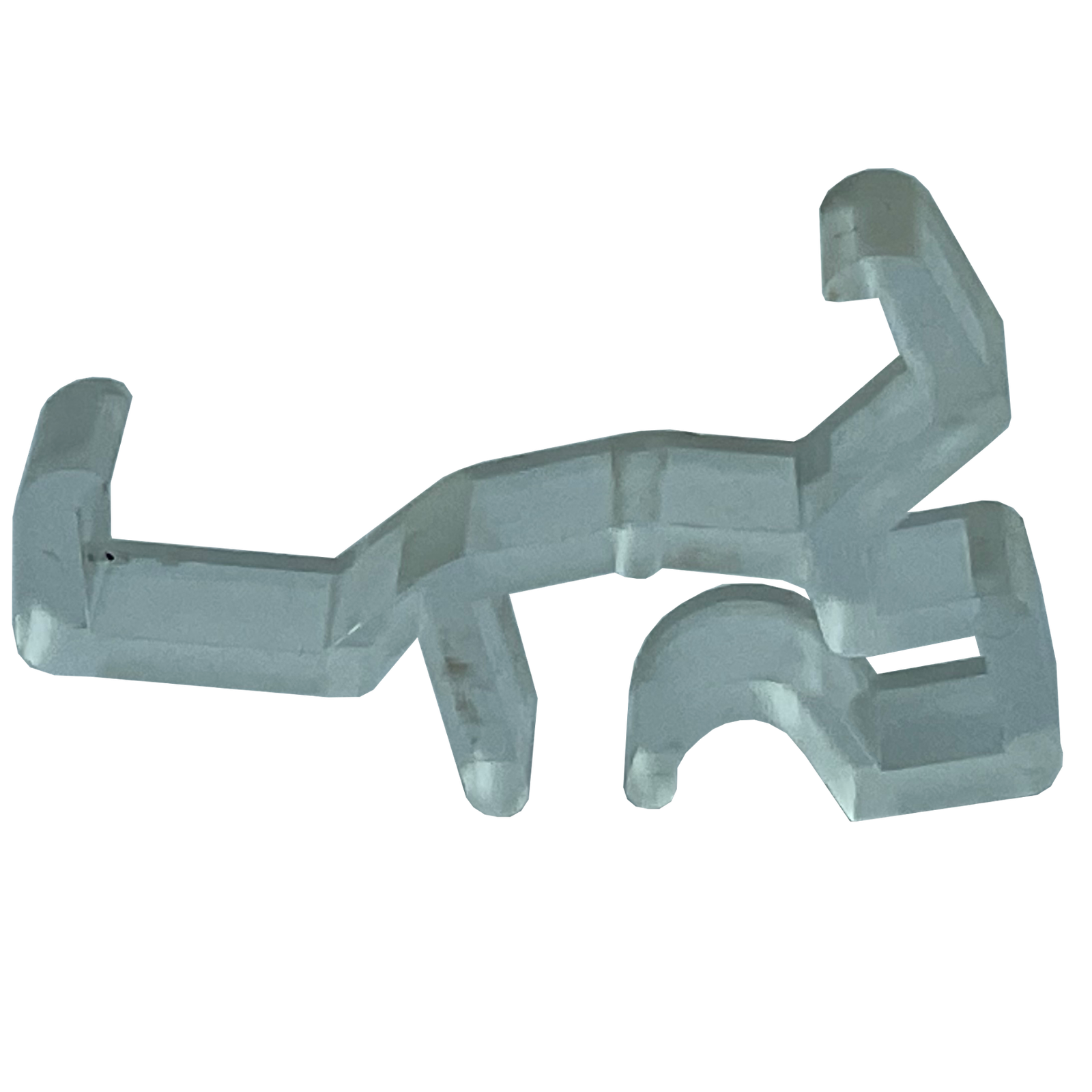 Görselde gördüğünüz tipteki klips, genellikle metal veya dayanıklı şeffaf/beyaz plastikten üretilir ve “J” veya “L” şeklindeki şafaklık başlıklarının (valance return) perde kasasına sıkıca oturmasını sağlamak için tasarlanmıştır.