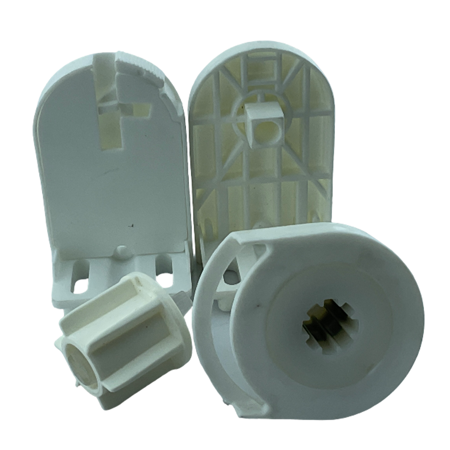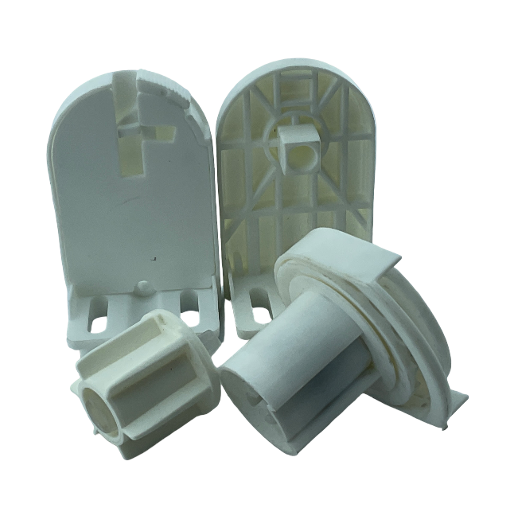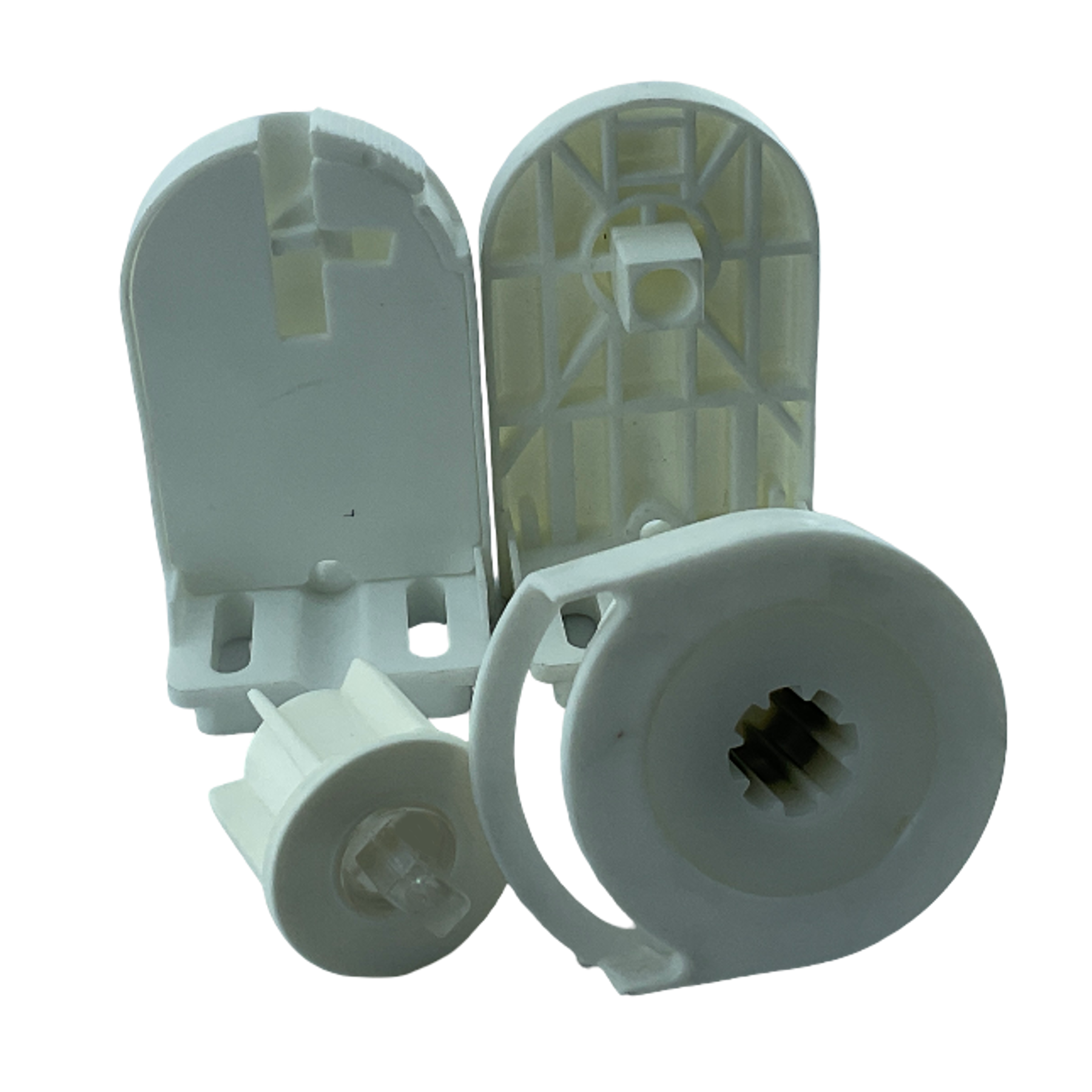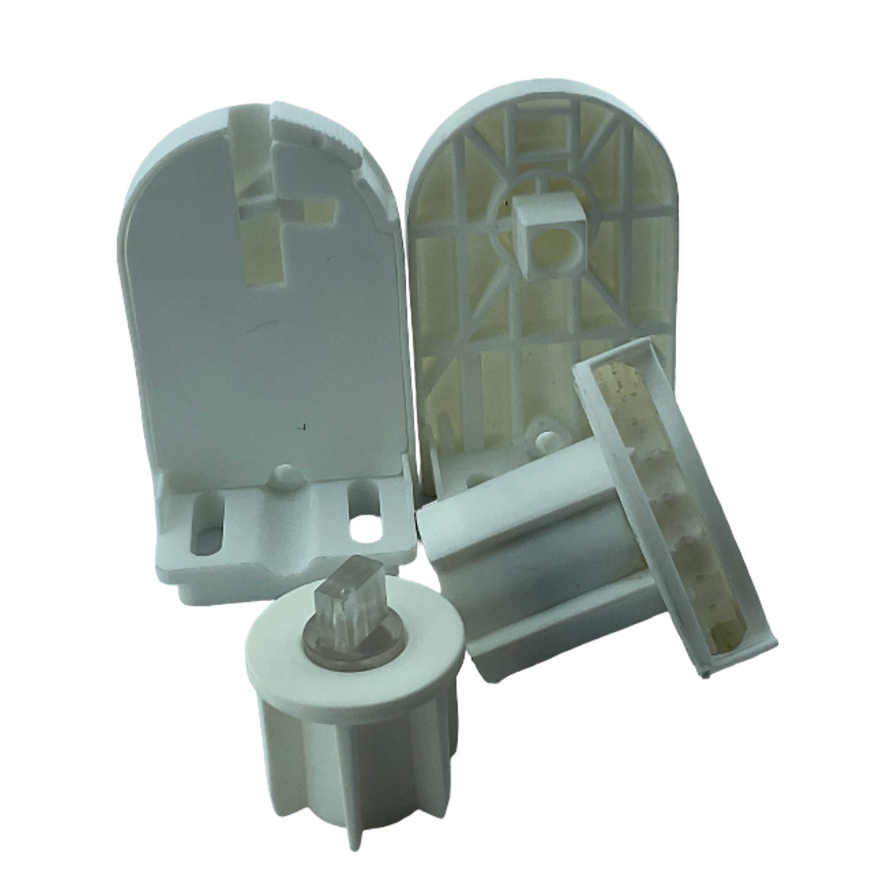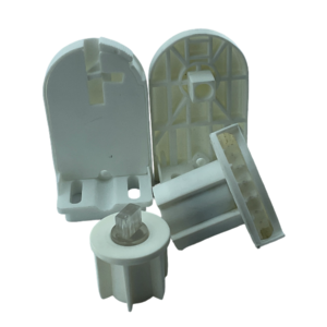 SPY253, 27mm/28mm ince borulu stor perdeler için tasarlanmış, beyaz renkli ve montaj kolaylığı sağlayan mandallı ayaklara sahip pratik bir settir.