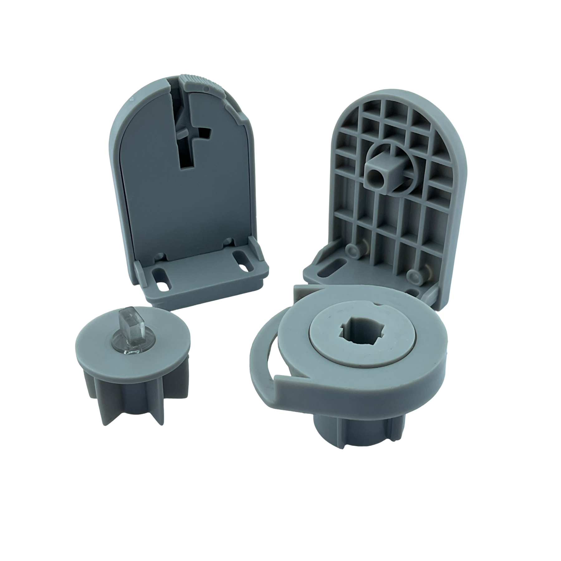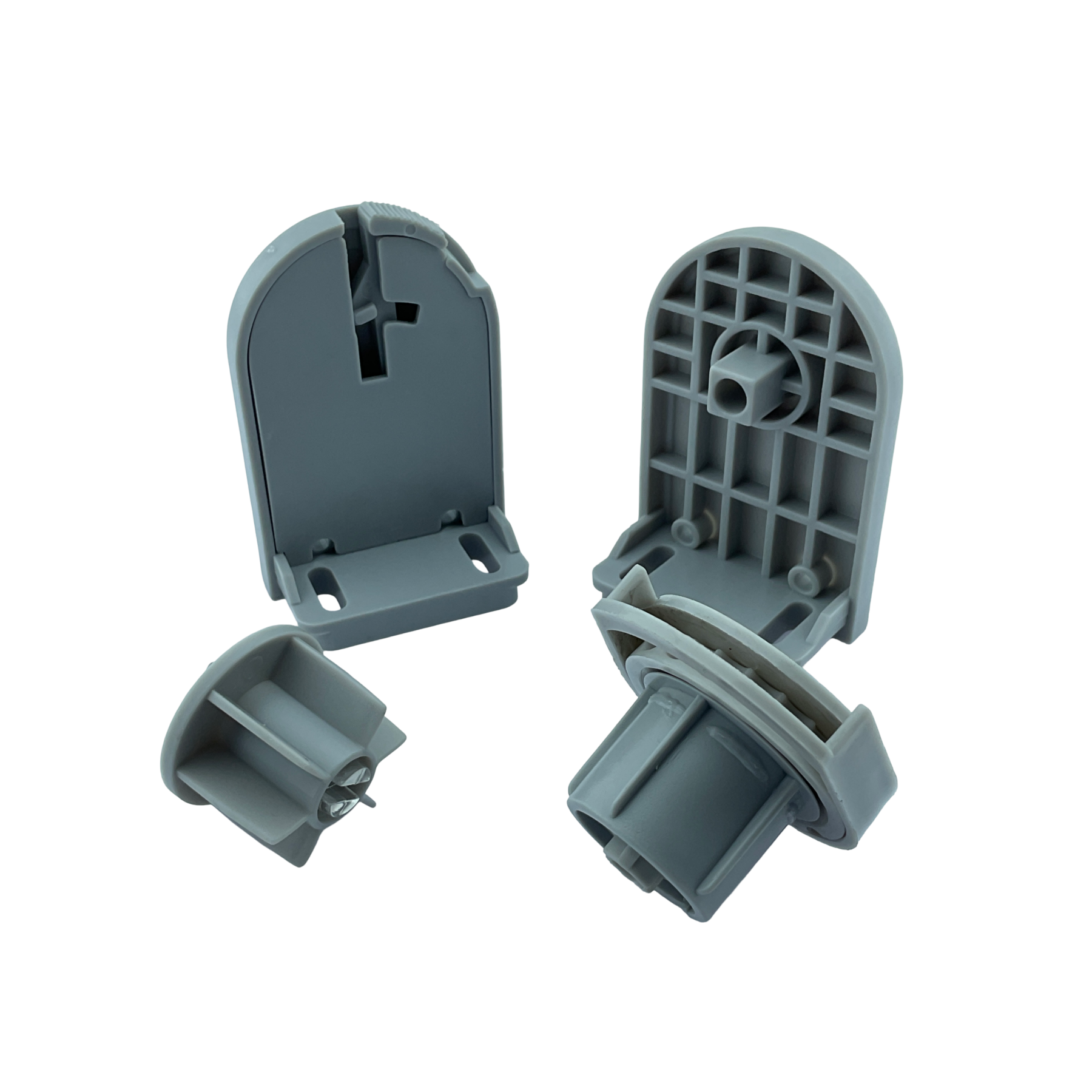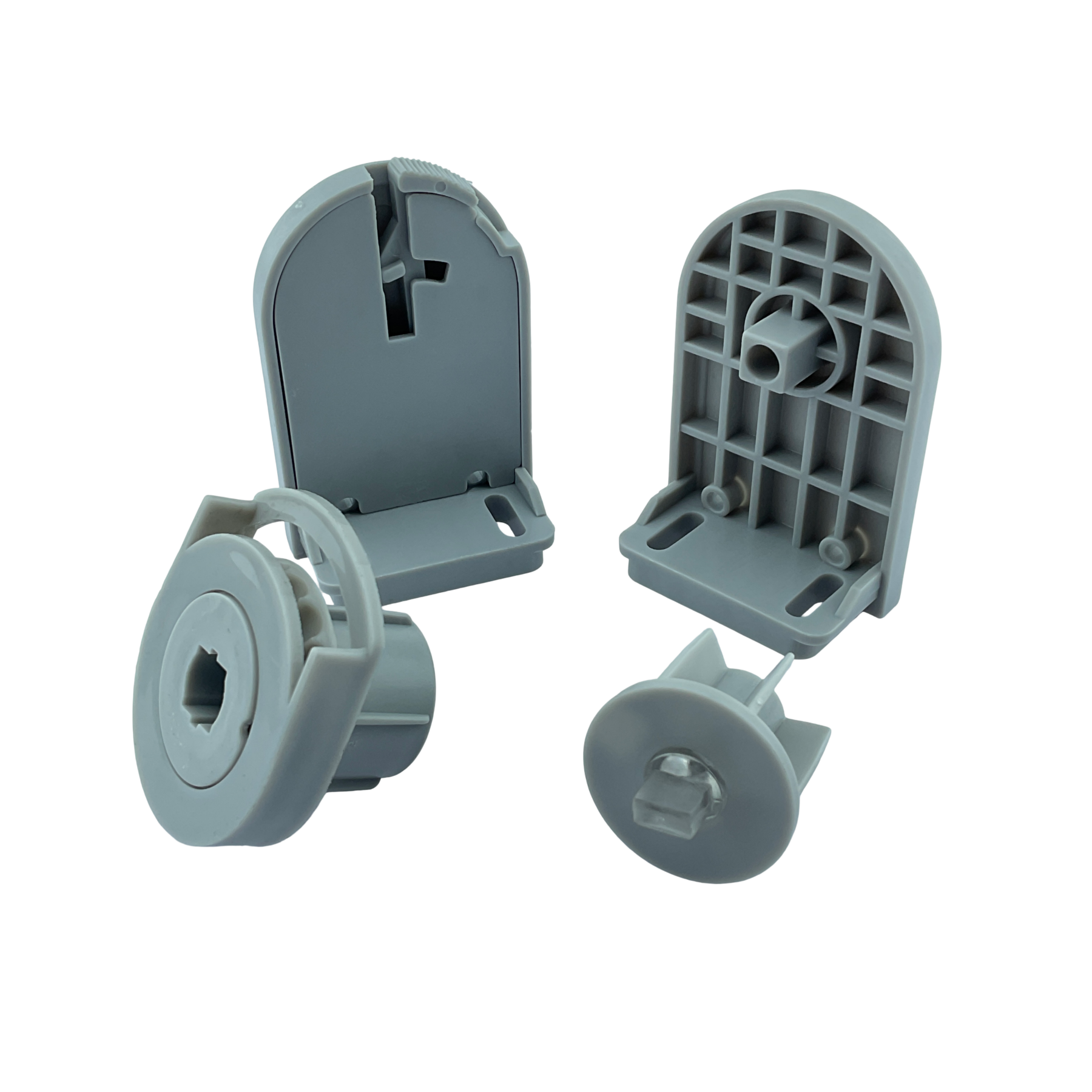 SPY270, 32mm çapındaki stor ve zebra perdeler için hazırlanmış, tamamı gri renkli ve mandallı (kilitli) plastik ayaklara sahip pratik montaj setidir.