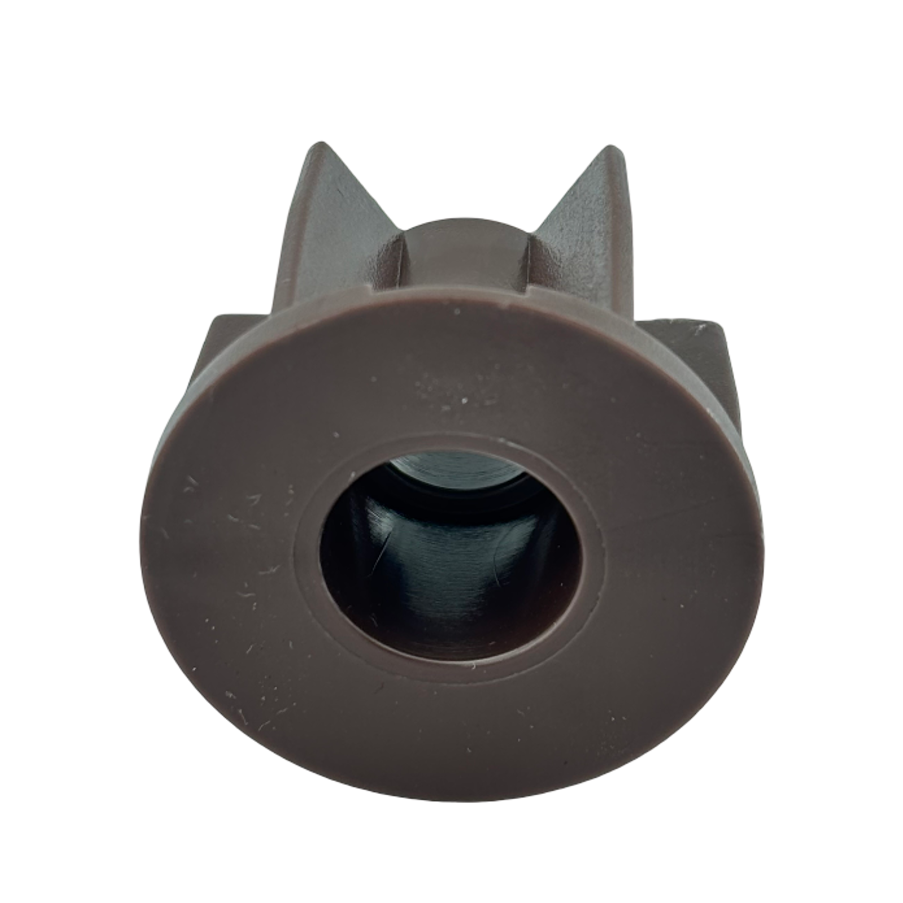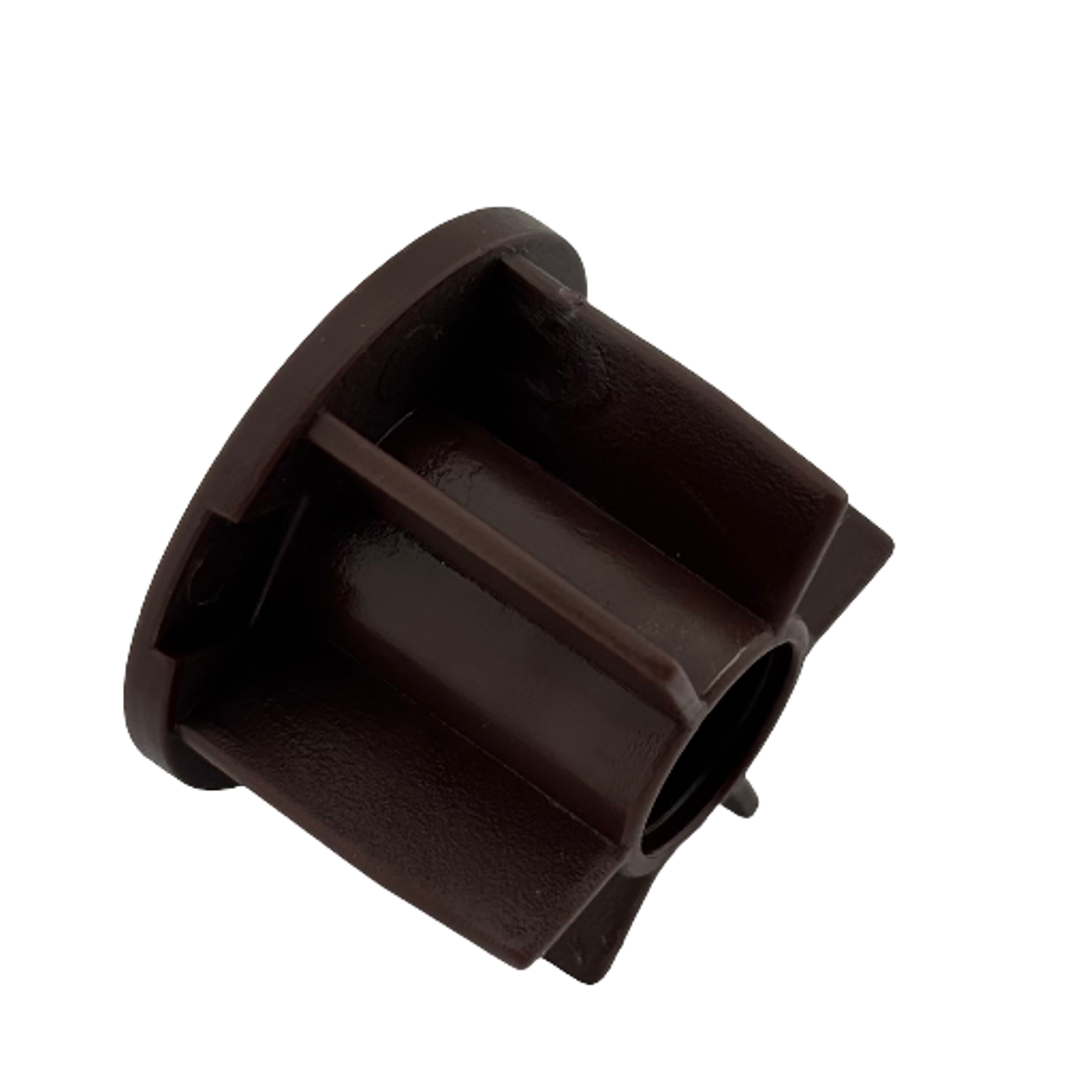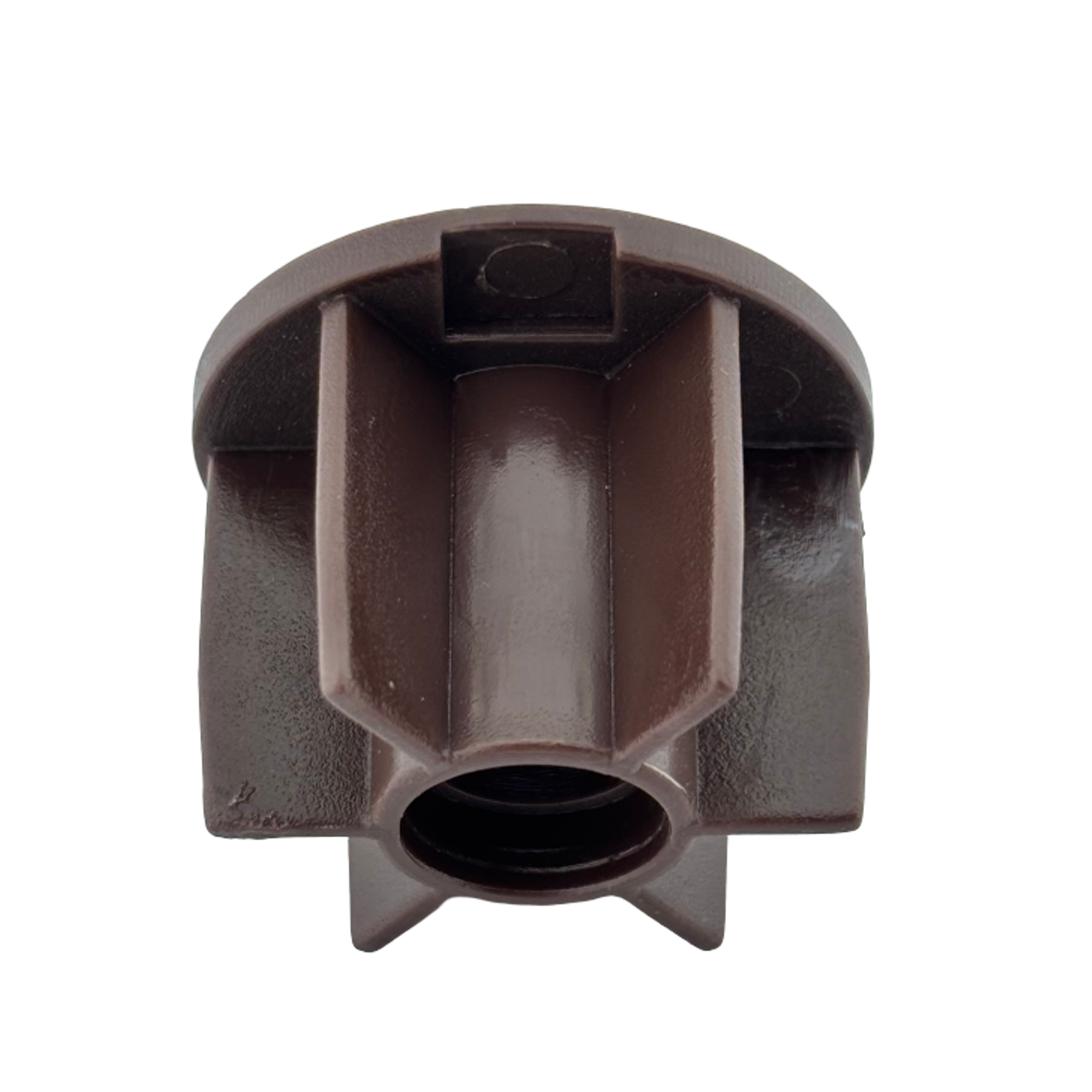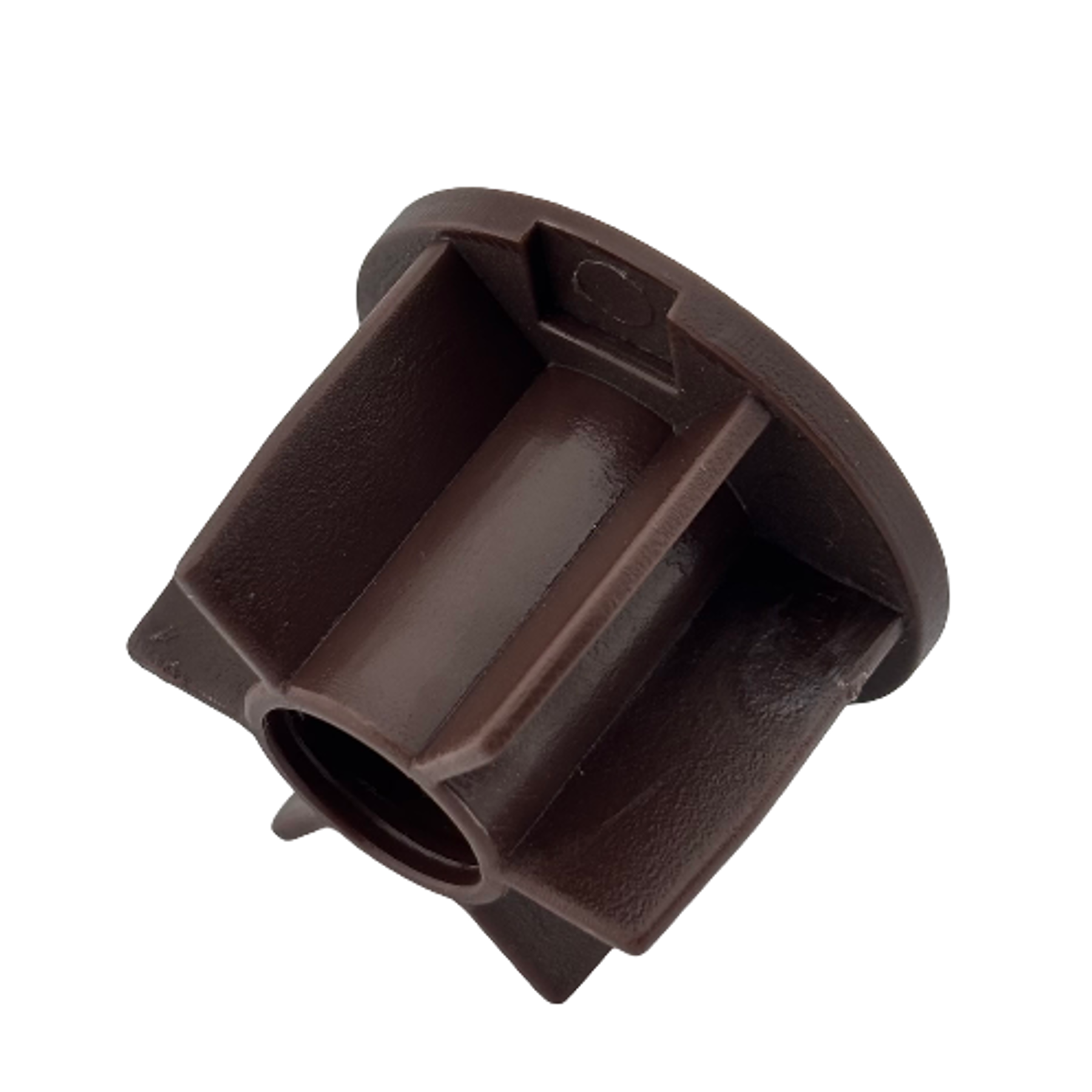 32 mm stor perde borularında orta ayak bağlantısı için kullanılan, kahverengi plastik boru sonu tıpası. Pimli yapısıyla güçlü sabitleme sağlar.