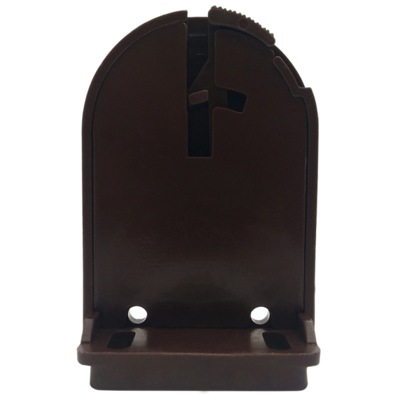 Mandallı yapısı sayesinde kolay monte edilen, geniş kasalı stor ve zebra perdeler için üretilmiş kahverengi perde ayağı. Estetik, sağlam ve pratiktir.