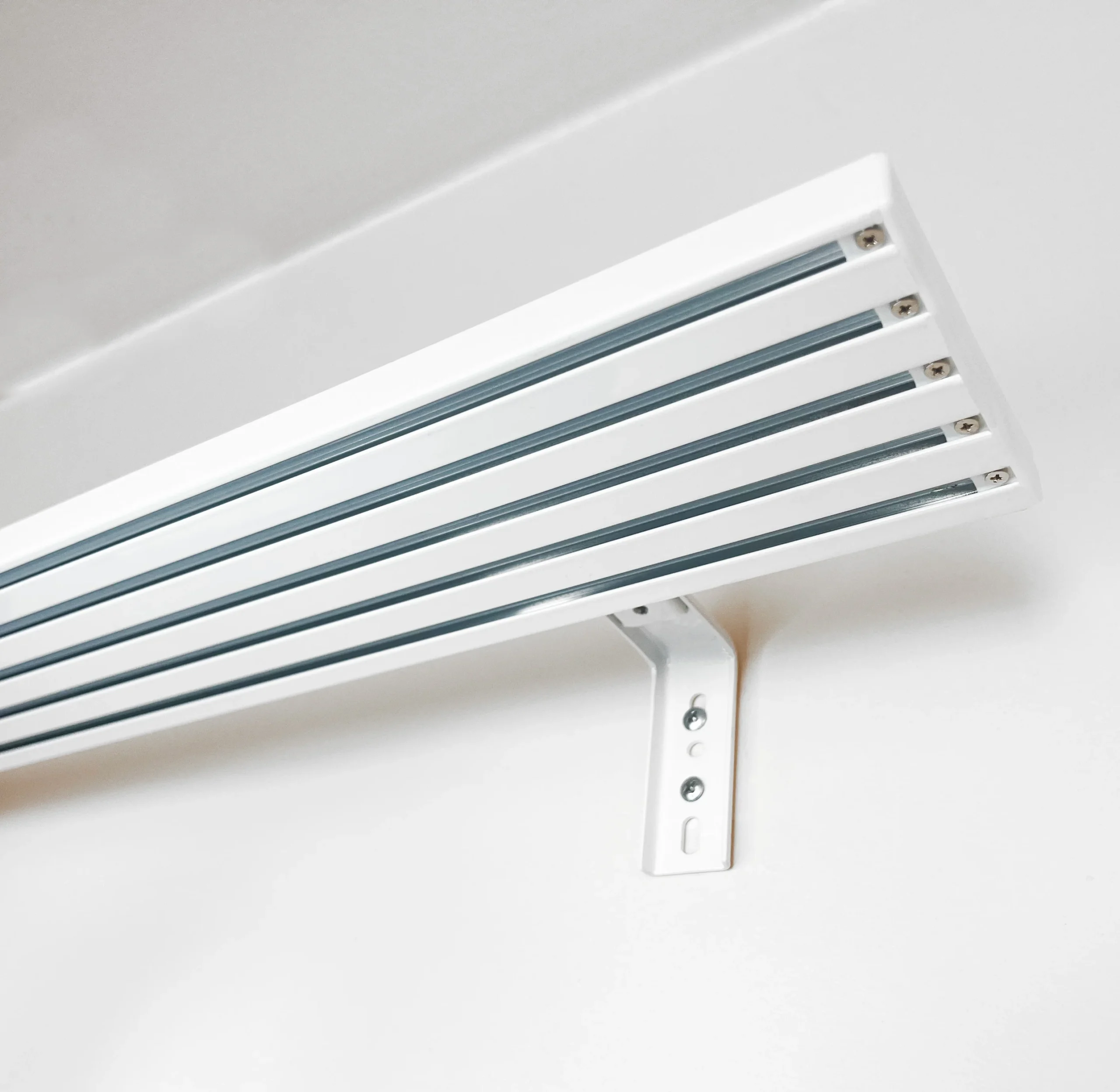 Beş parçalı Japon perdeler için geniş alan kaplamaya uygun raylı mekanizma sistemi.