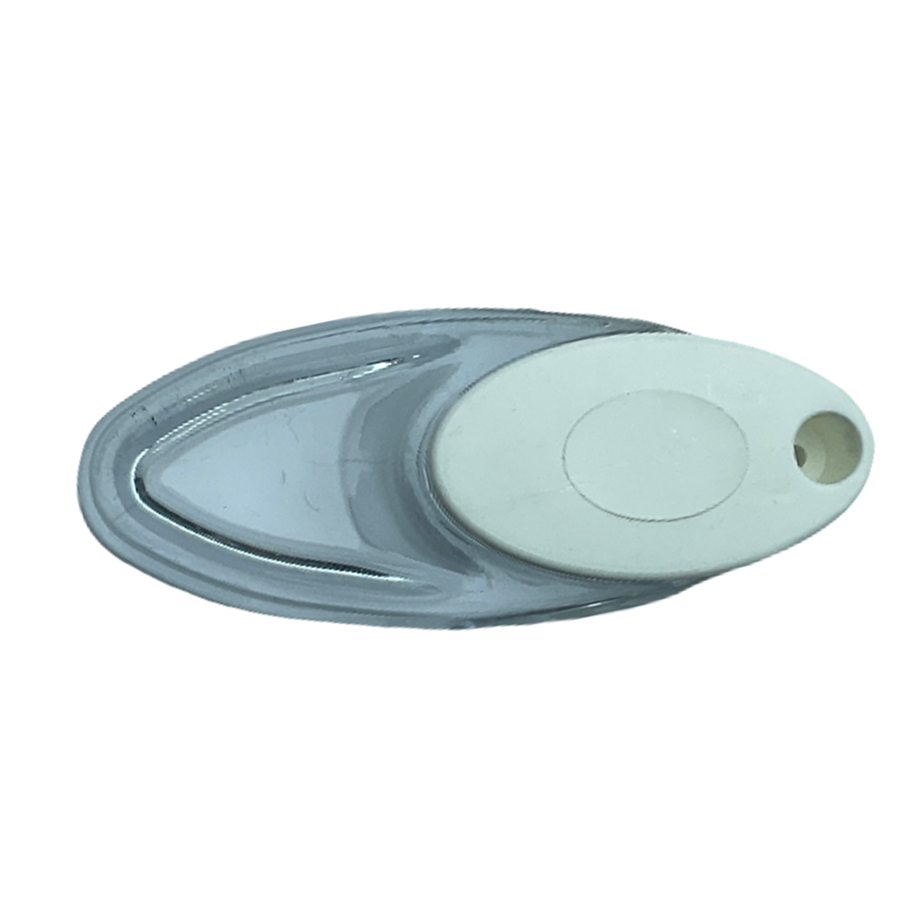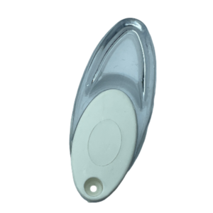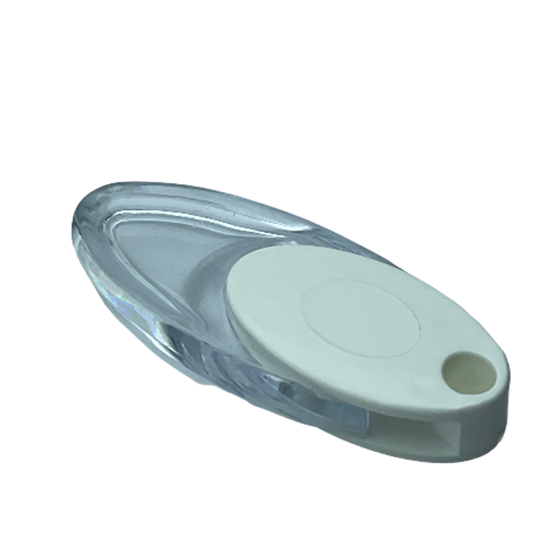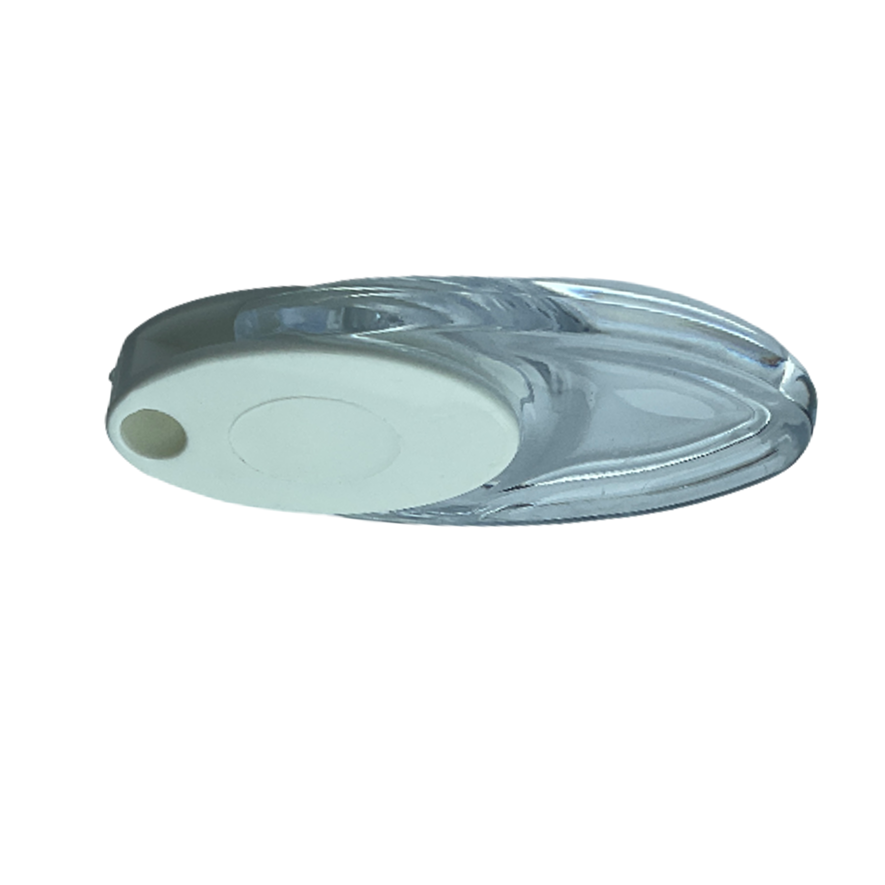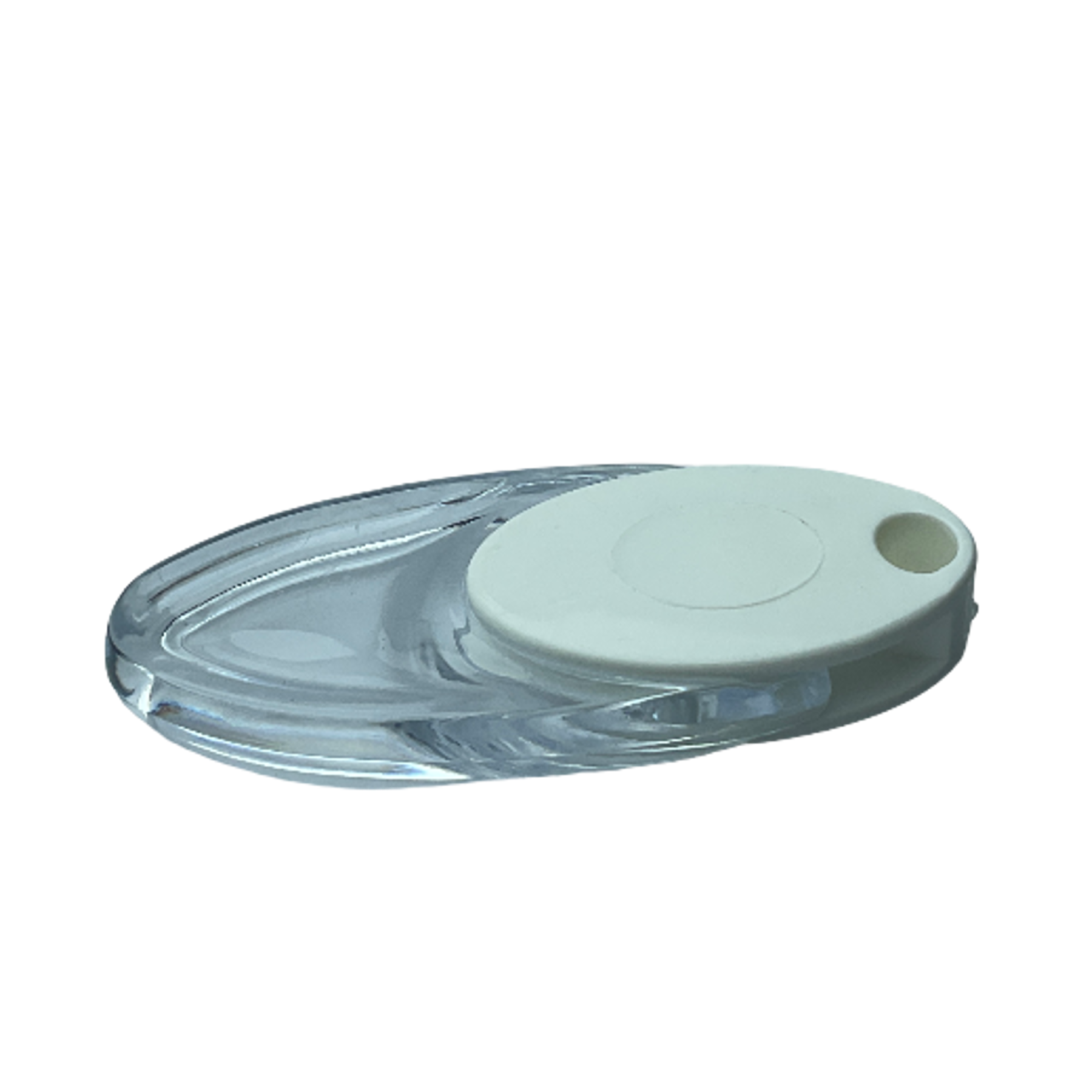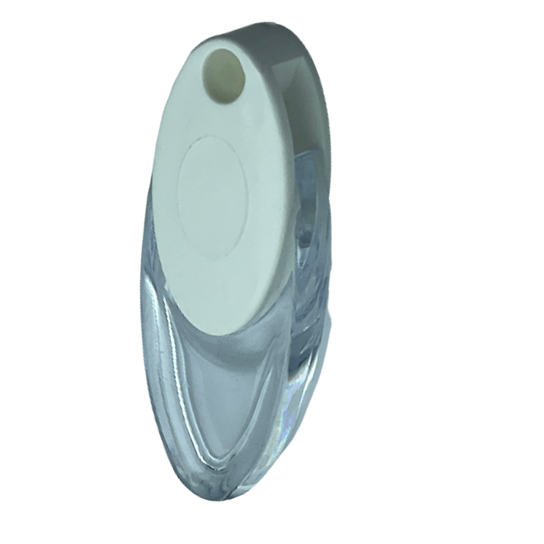 Zebra, stor ve dikey perdeler için şeffaf kristal gövdeli, beyaz kapaklı dekoratif elçek ağırlık aparatı.